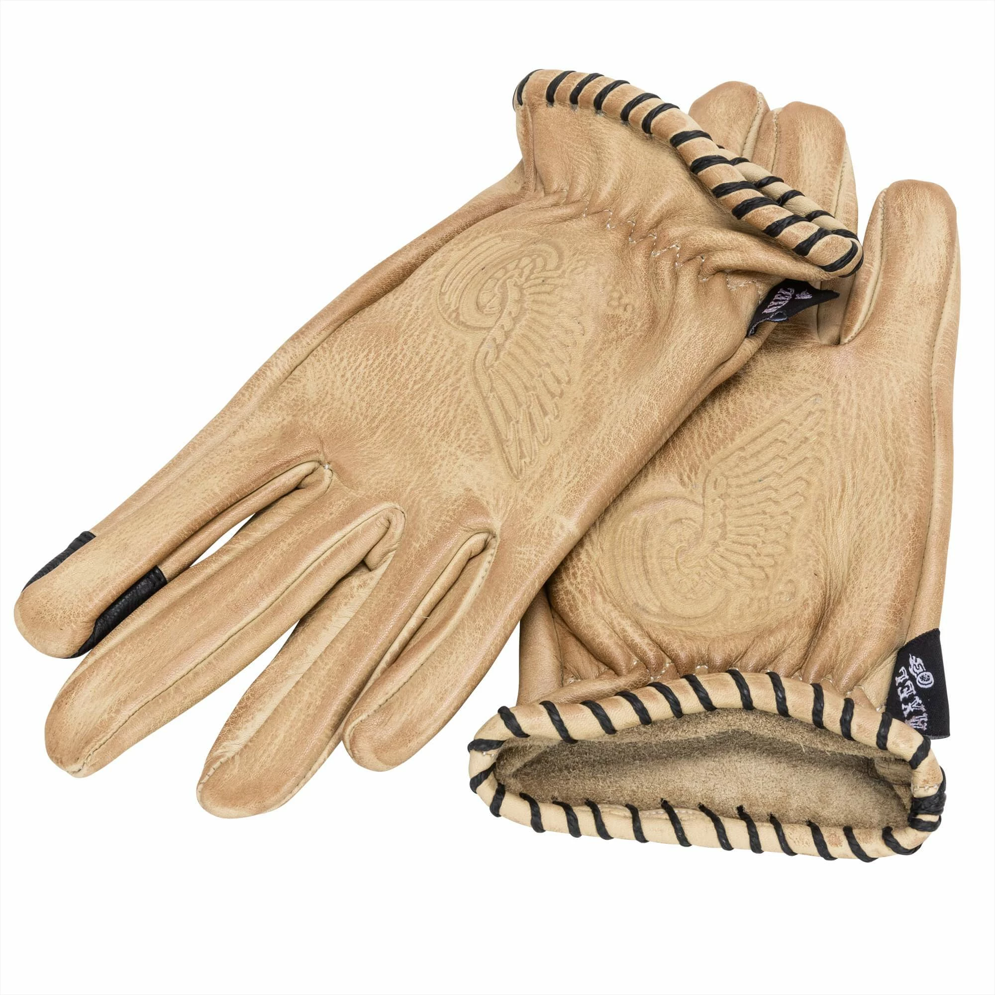 These tan oiled and waxed heavy duty leather gloves from Axel Co. are made from high quality 100% cow hide. They are touch screen compatible with pointer and thumb finger touch screen sensors, and feature stitched wrists.