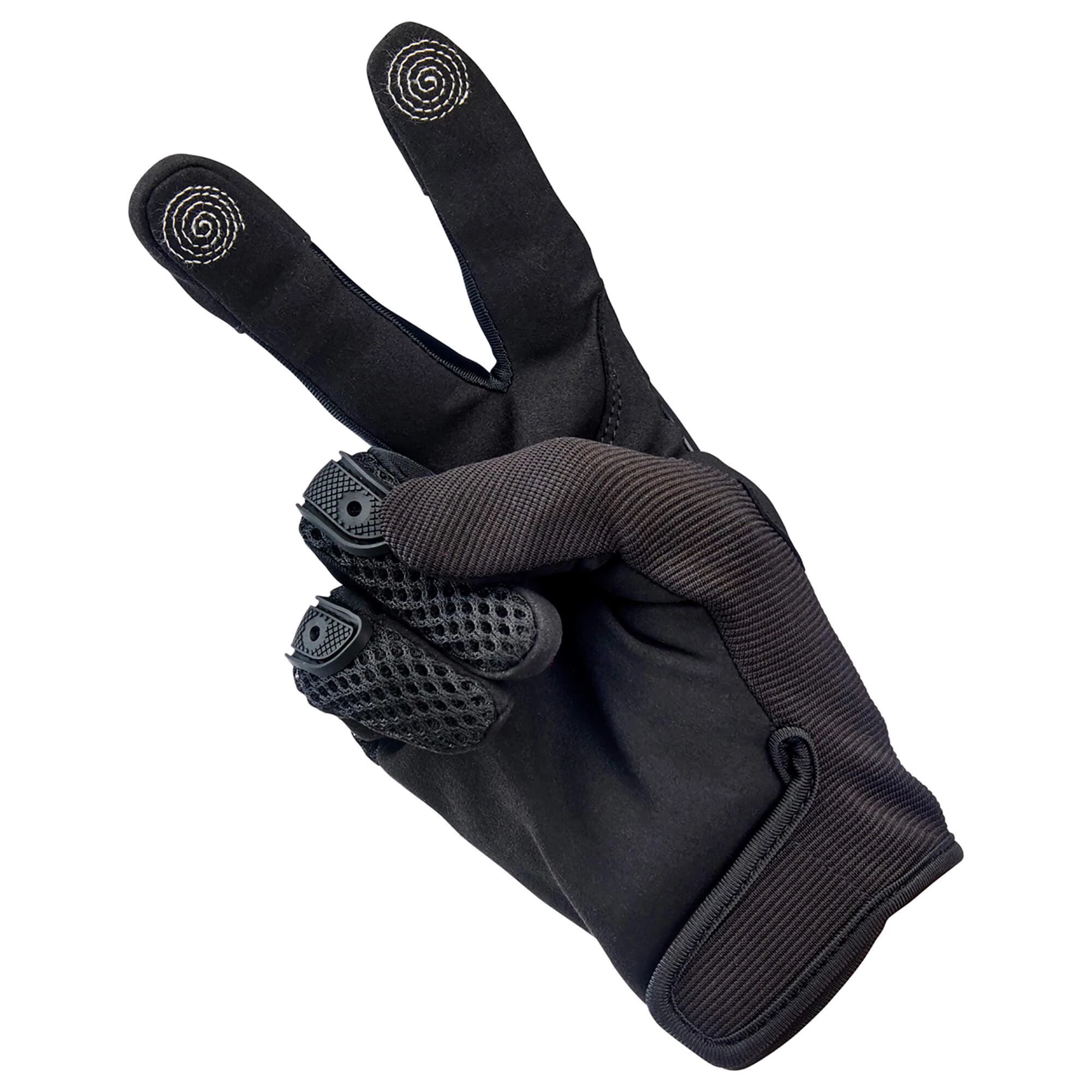 - Conductive stitching in fingers and thumb lets you operate smart screens