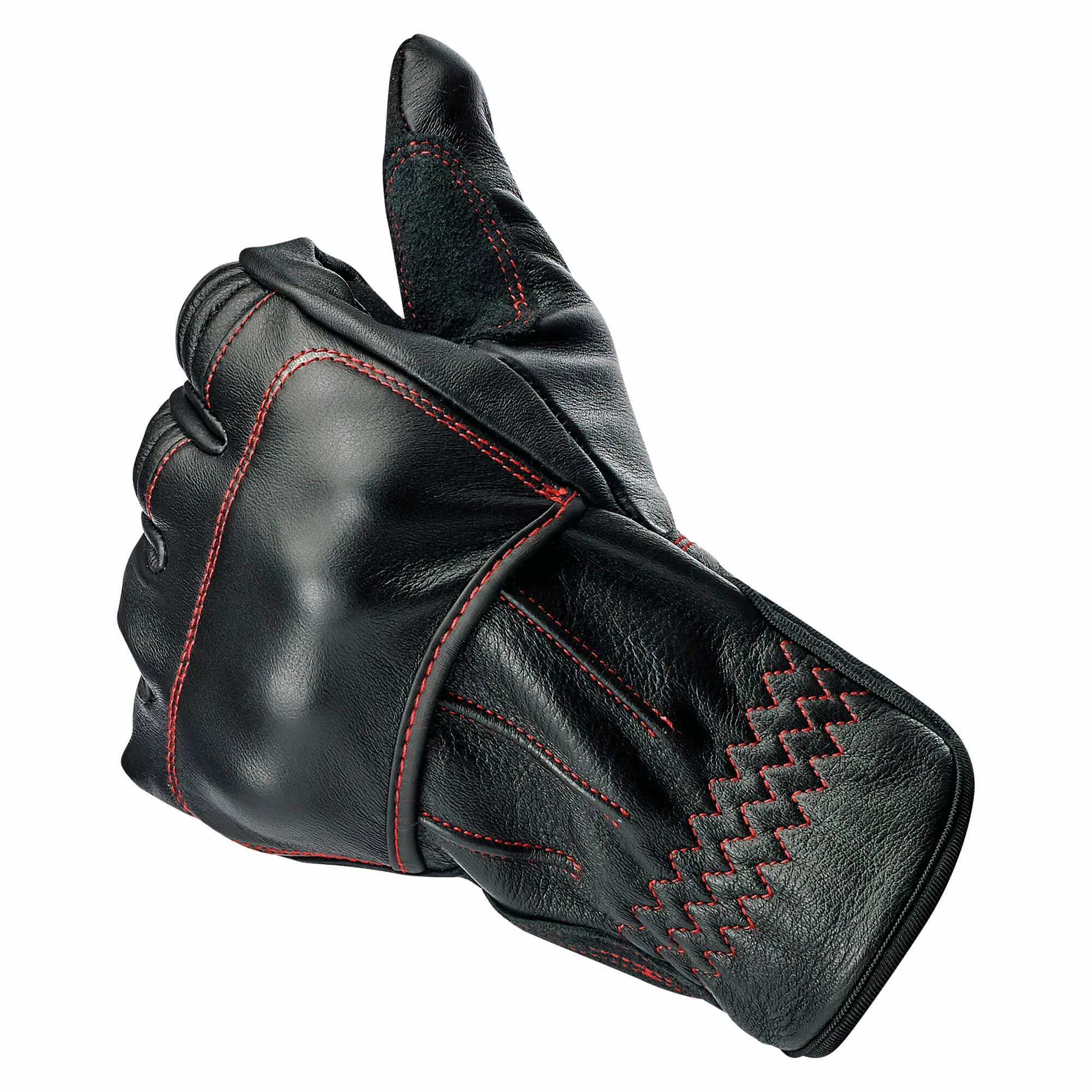 - Wide elastic Velcro wrist closure with thermoplastic rubber Biltwell pull tab