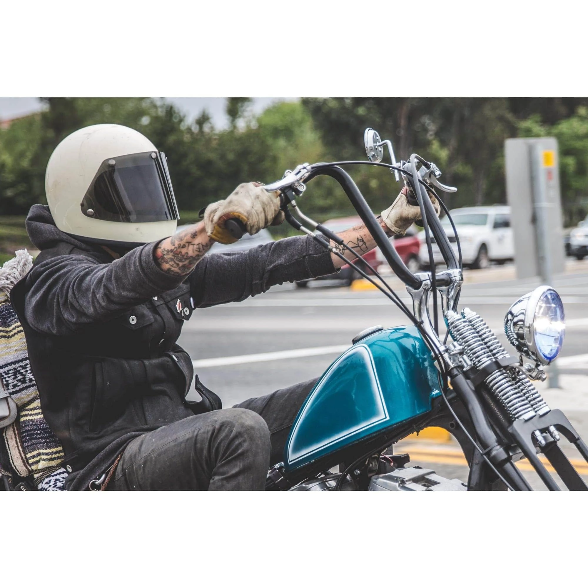 Biltwell’s laser-cut plastic flex shield covers the eye port on ECE-certified Gringo helmets to protect you from the elements.