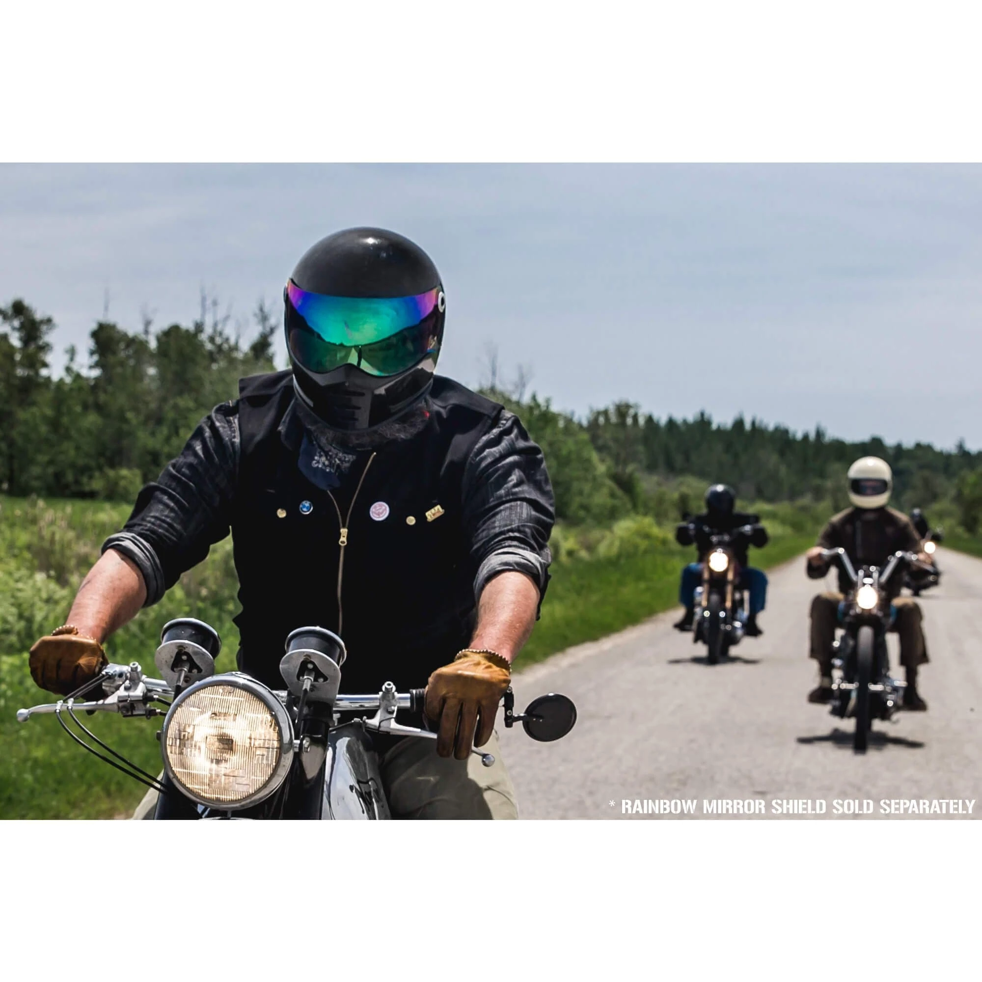 Progressively styled and rigorously tested, Biltwell’s ECE-certified helmet is a top choice for riders who demand comfort and high performance. Features include a rugged ABS outer shell, ventilated EPS safety liner, replaceable comfort liner and a clear anti-fog shield.