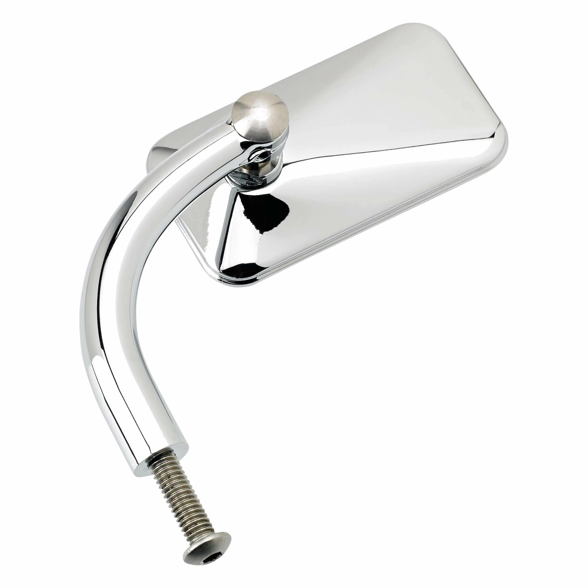 - Mirror head angle adjusts via ball and socket assembly