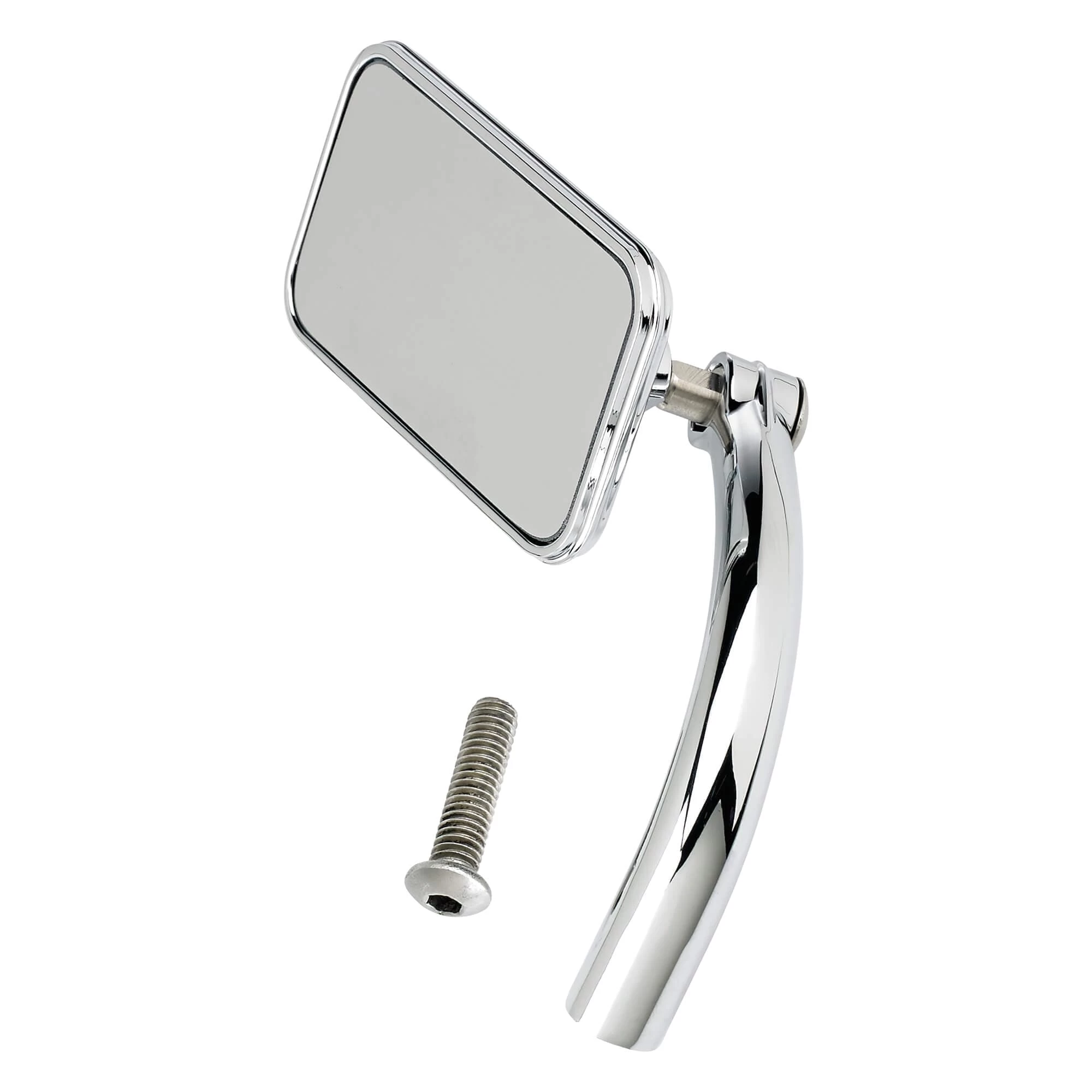 Precision die-cast aluminum construction with stainless-steel ball joint mounting hardware. Tempered glass mirror head. Clever ball joint assembly inside the mirror perch can be reversed for right-side mounting. Built to bolt-onto most stock Harley-Davidson hand controls.