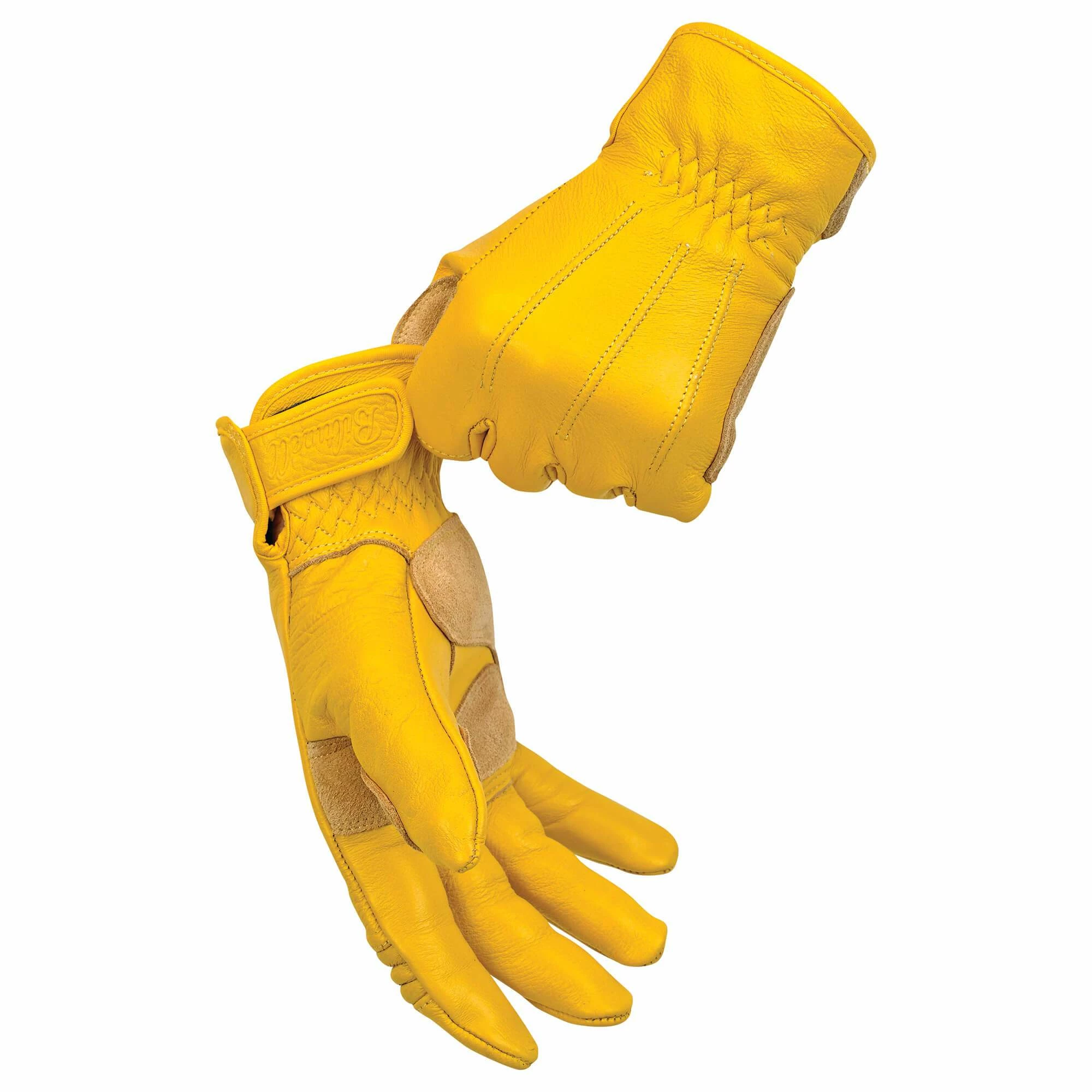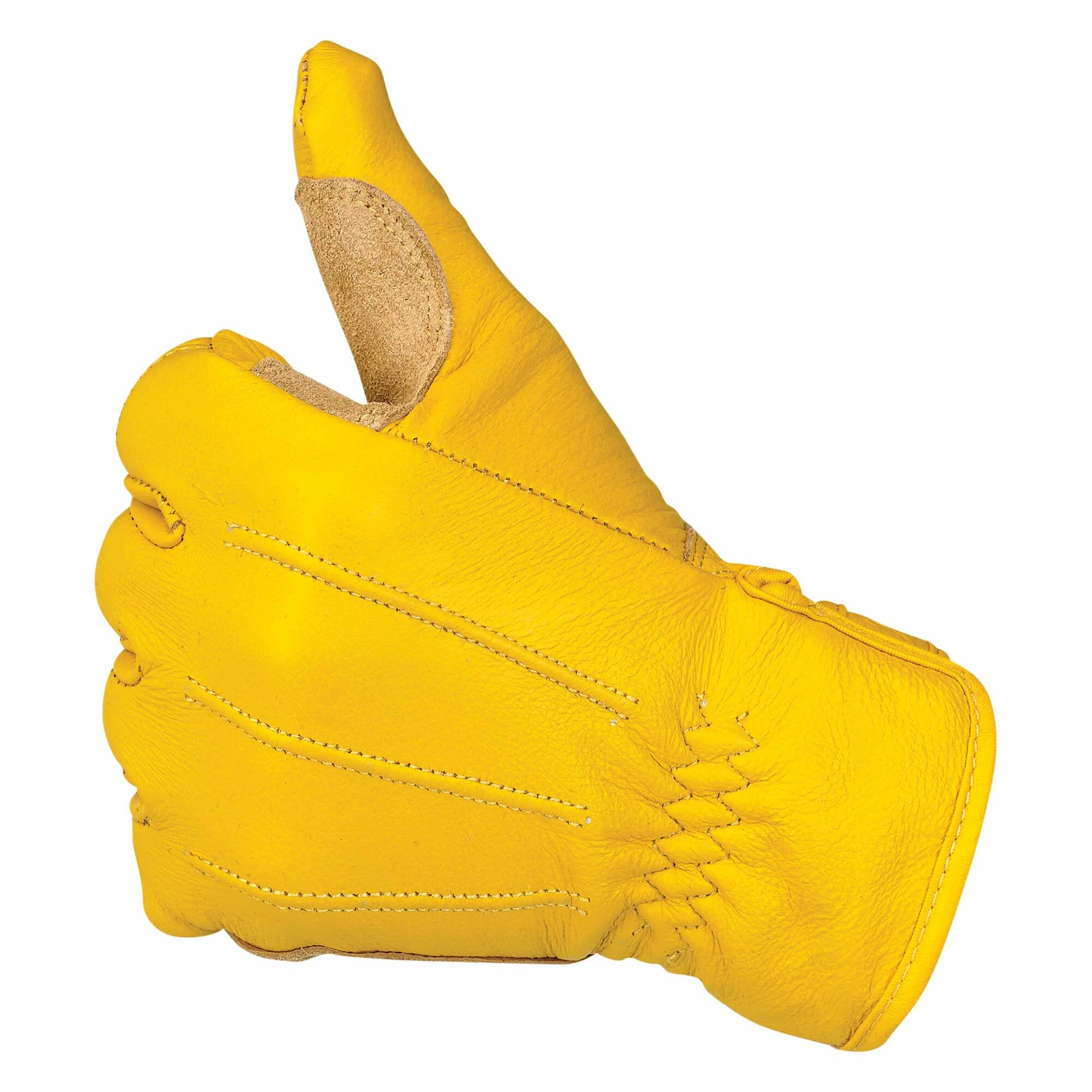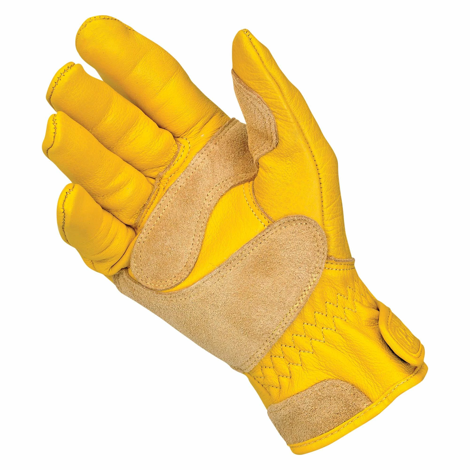 A rugged and versatile glove for bikeriders who like function, not filigree. Classically styled 100% leather construction with fleece half liner for comfort. Built for three-season riding: spring, summer and fall. Biltwell’s work Glove features articulating index and middle fingers for added flexibility. The double-thick leather palms have light padding in anatomical pressure points for increased abrasion resistance and shock isolation. The open cuff has elastic gathers and an adjustable embossed leather tab for easy installation and a great fit.