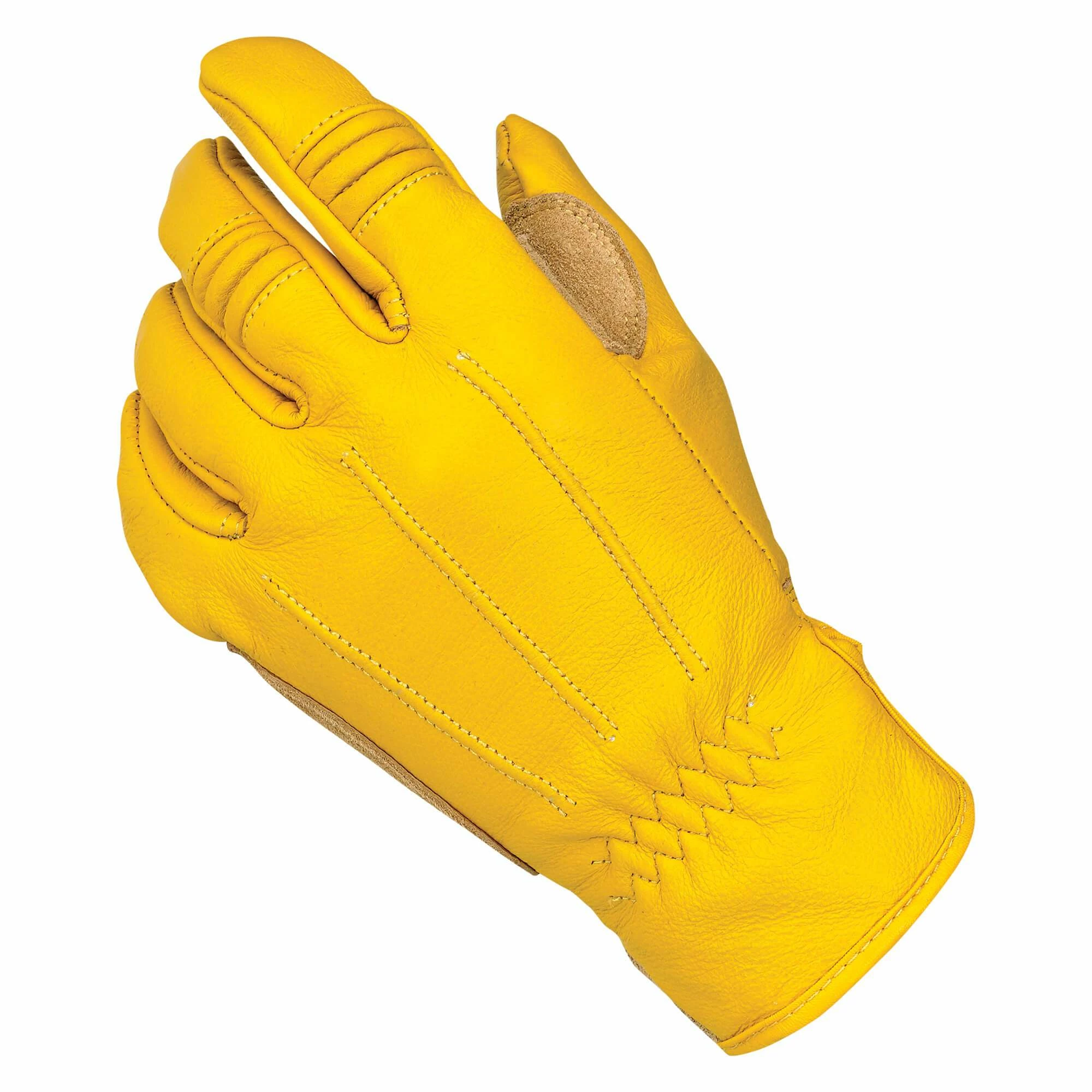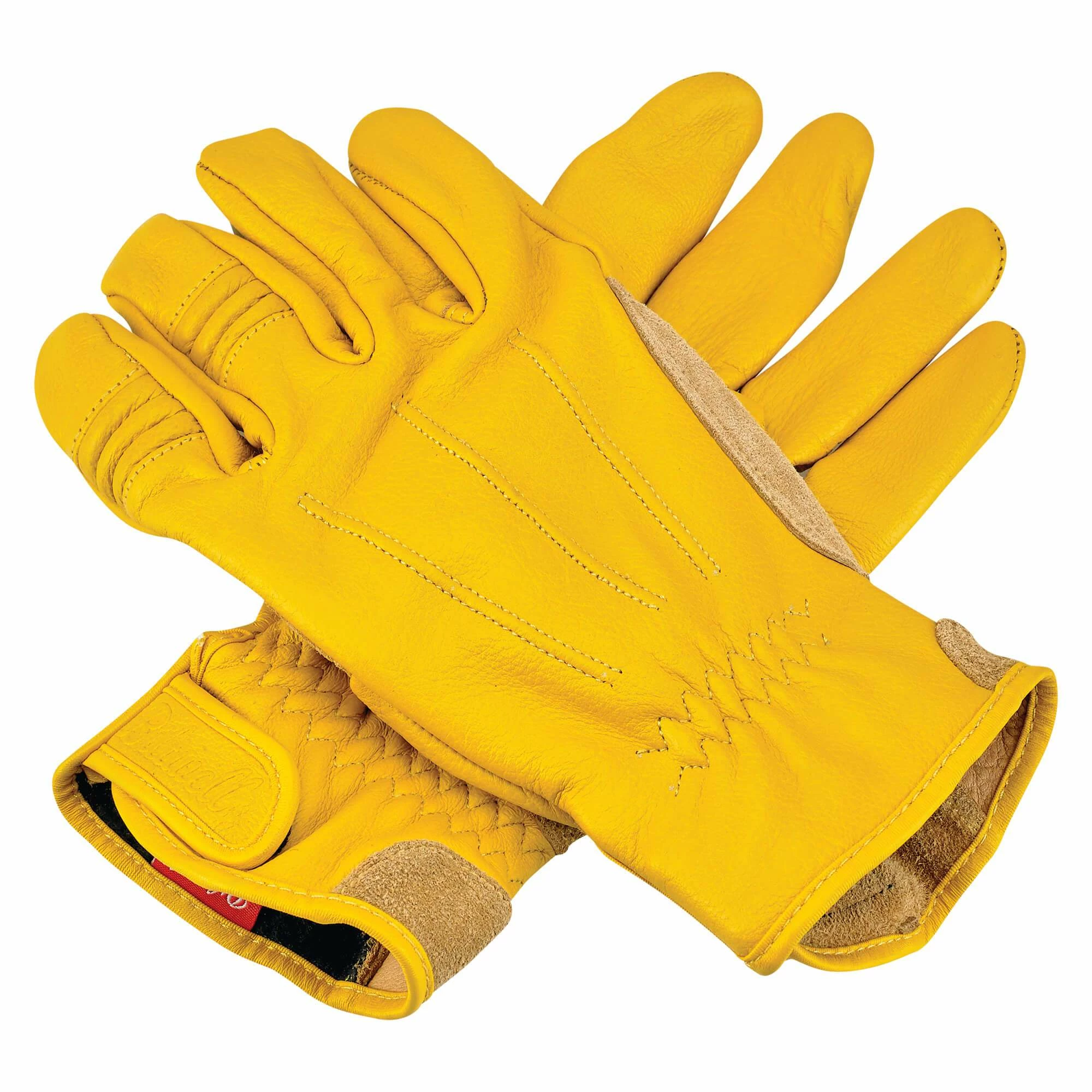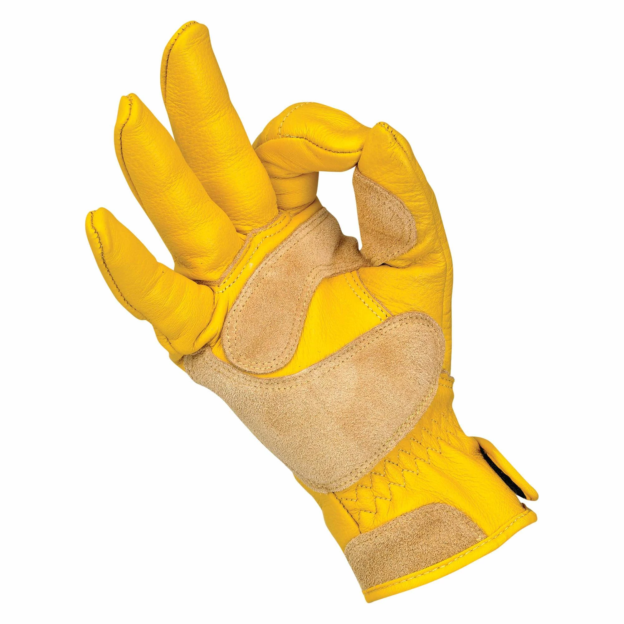 A rugged and versatile glove for bikeriders who like function, not filigree. Classically styled 100% leather construction with fleece half liner for comfort. Built for three-season riding: spring, summer and fall. Biltwell’s work Glove features articulating index and middle fingers for added flexibility. The double-thick leather palms have light padding in anatomical pressure points for increased abrasion resistance and shock isolation. The open cuff has elastic gathers and an adjustable embossed leather tab for easy installation and a great fit.