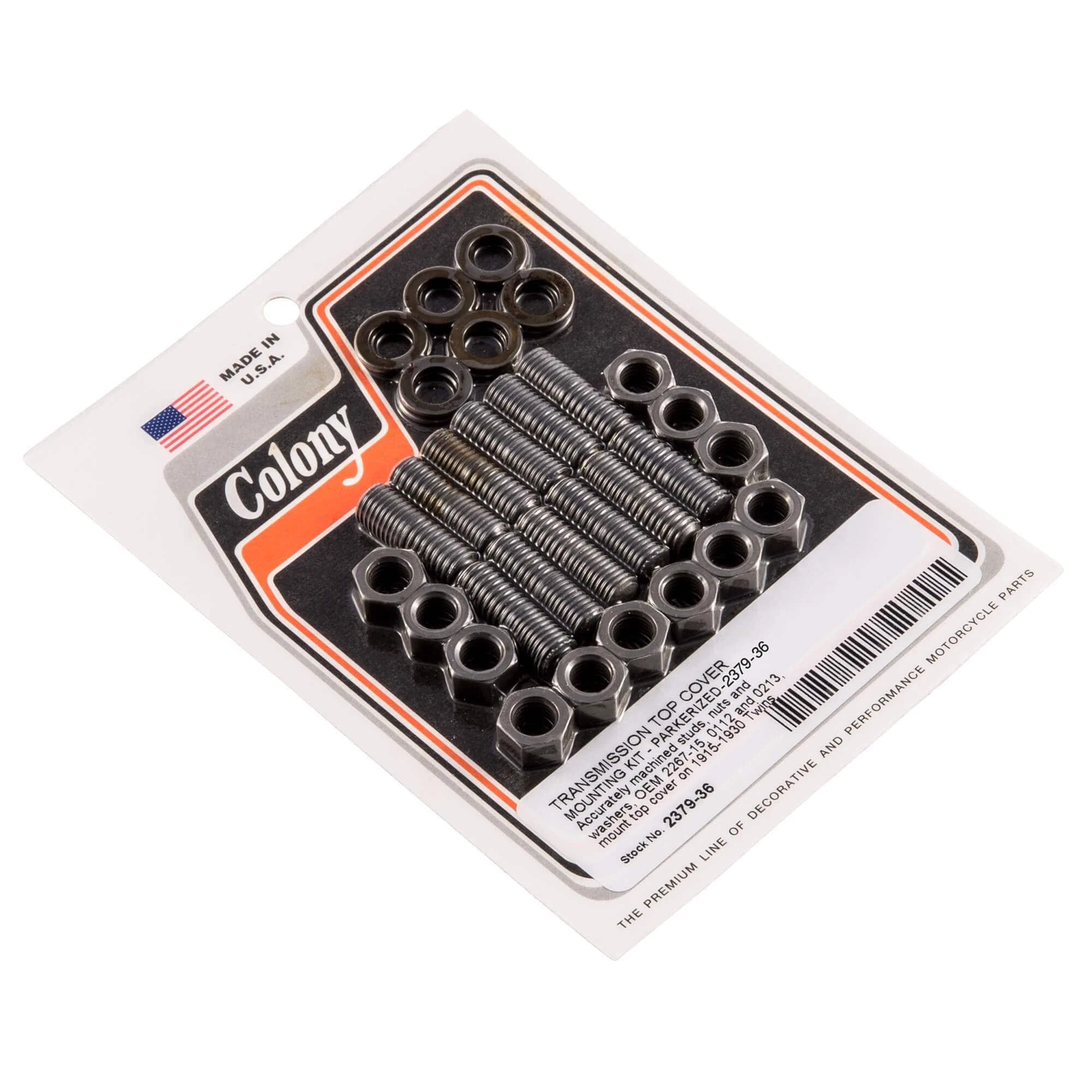 TRANSMISSION TOP COVER MOUNTING KIT – PARKERIZED Accurately machined studs, nuts and washers, OEM 2267-15, 0112 and 0213, mount top cover on 1915-1930 Twins.