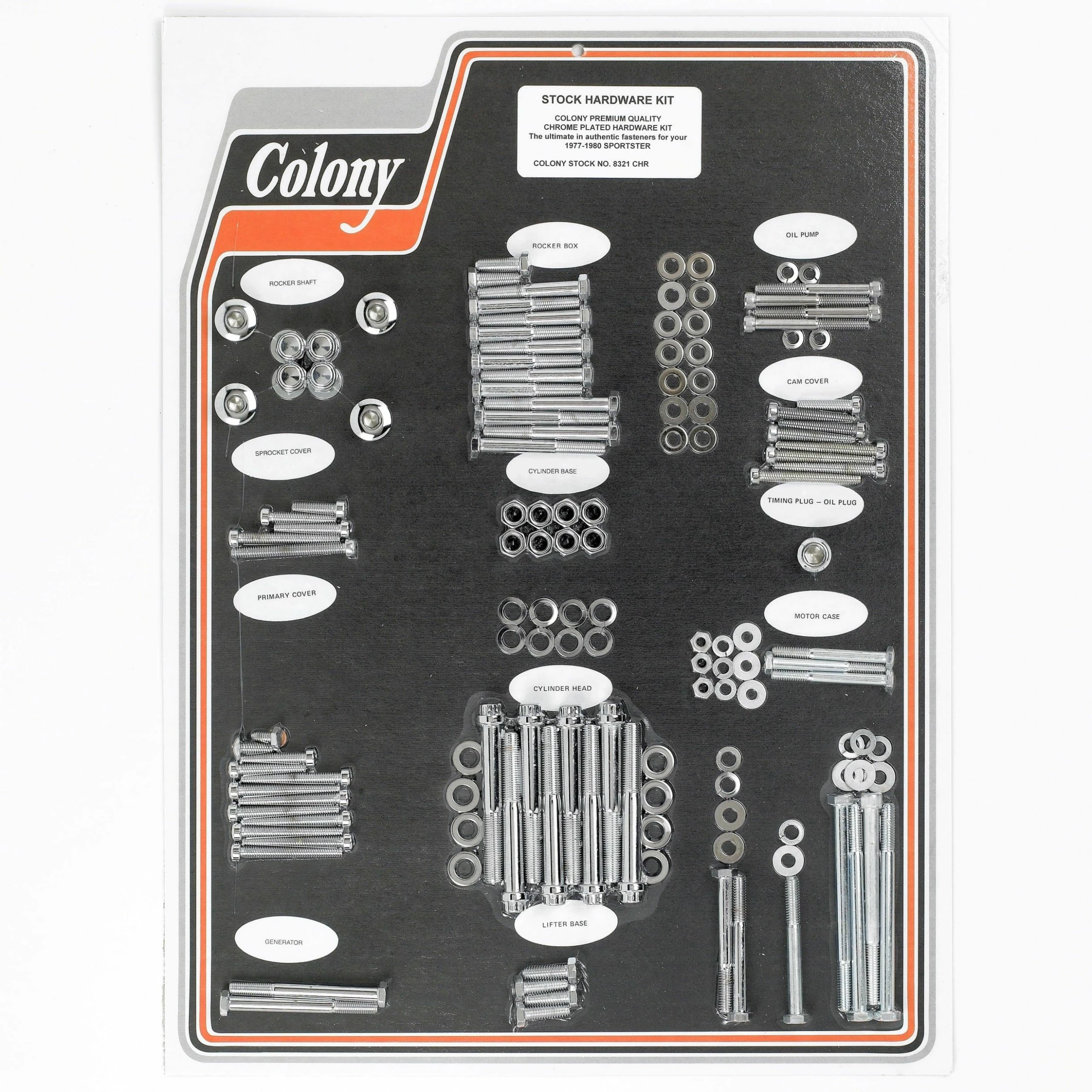 Colony #8321 CHR Complete Stock Hardware Kit – 1977 – 1980 Sportster – Chrome Plated