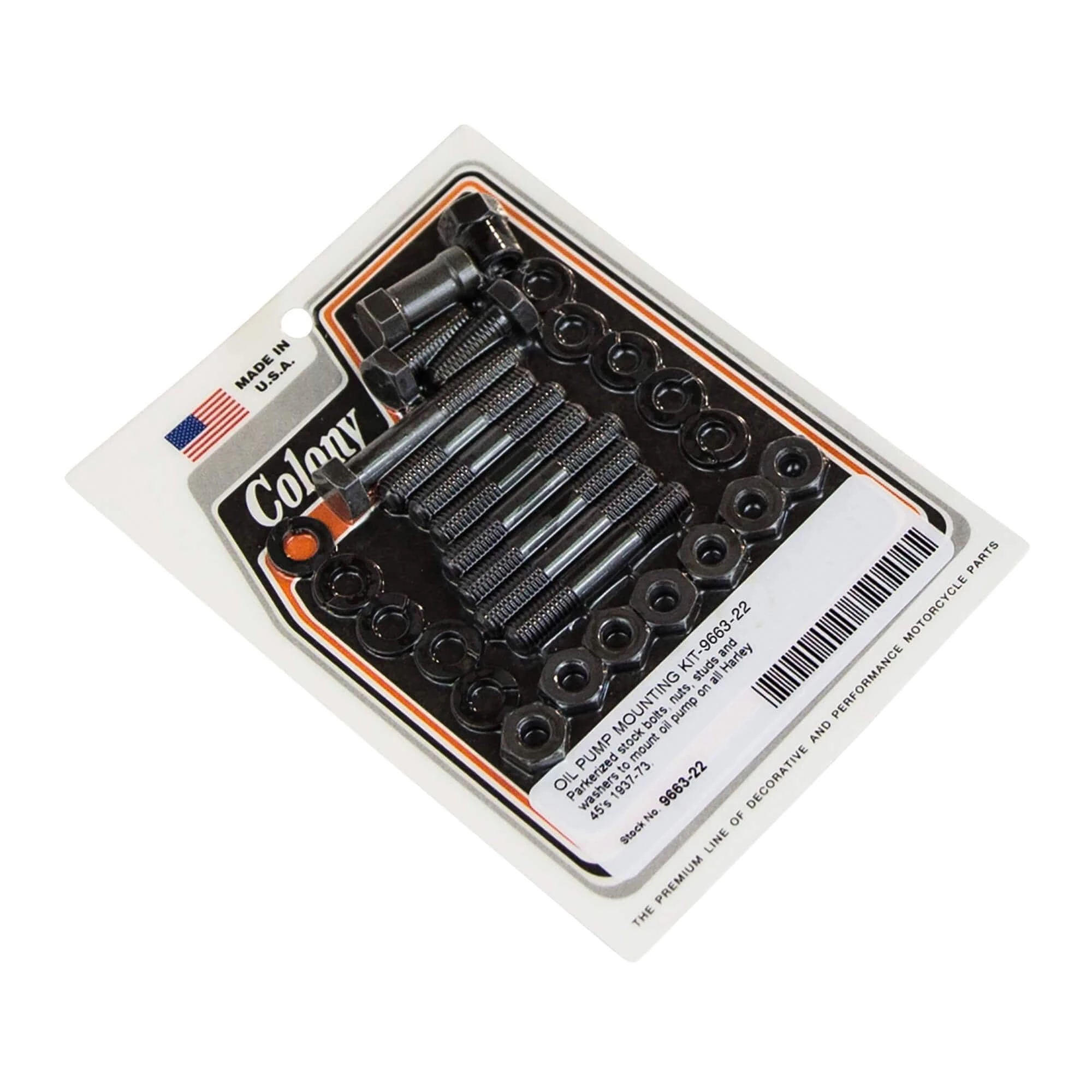 Colony #9663-22 Oil Pump Mounting Kit Parkerized Harley 45’s 1937-73
