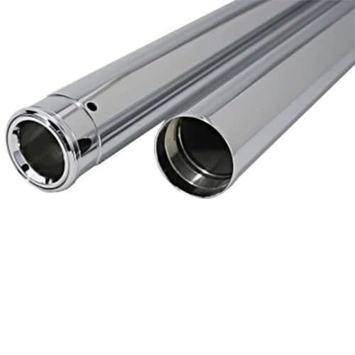 When you are ready to replace worn or damaged fork tubes, or change the length of your front end, you want the best quality fork tubes available. Custom Cycle Engineering has been manufacturing fork tubes since 1967 here in the USA. They start with DOM 1026 steel tubing that is ordered specially from a tubing mill, then centerless grind the outside diameter to OEM specifications and machine the rest of the tube to exact ID specs. Each tube is then buffed to a mirror finish, and chrome plated to a show chrome finish. This listing is for fork tubes only, internals are not included. For fitment see the Additional Information tab below.