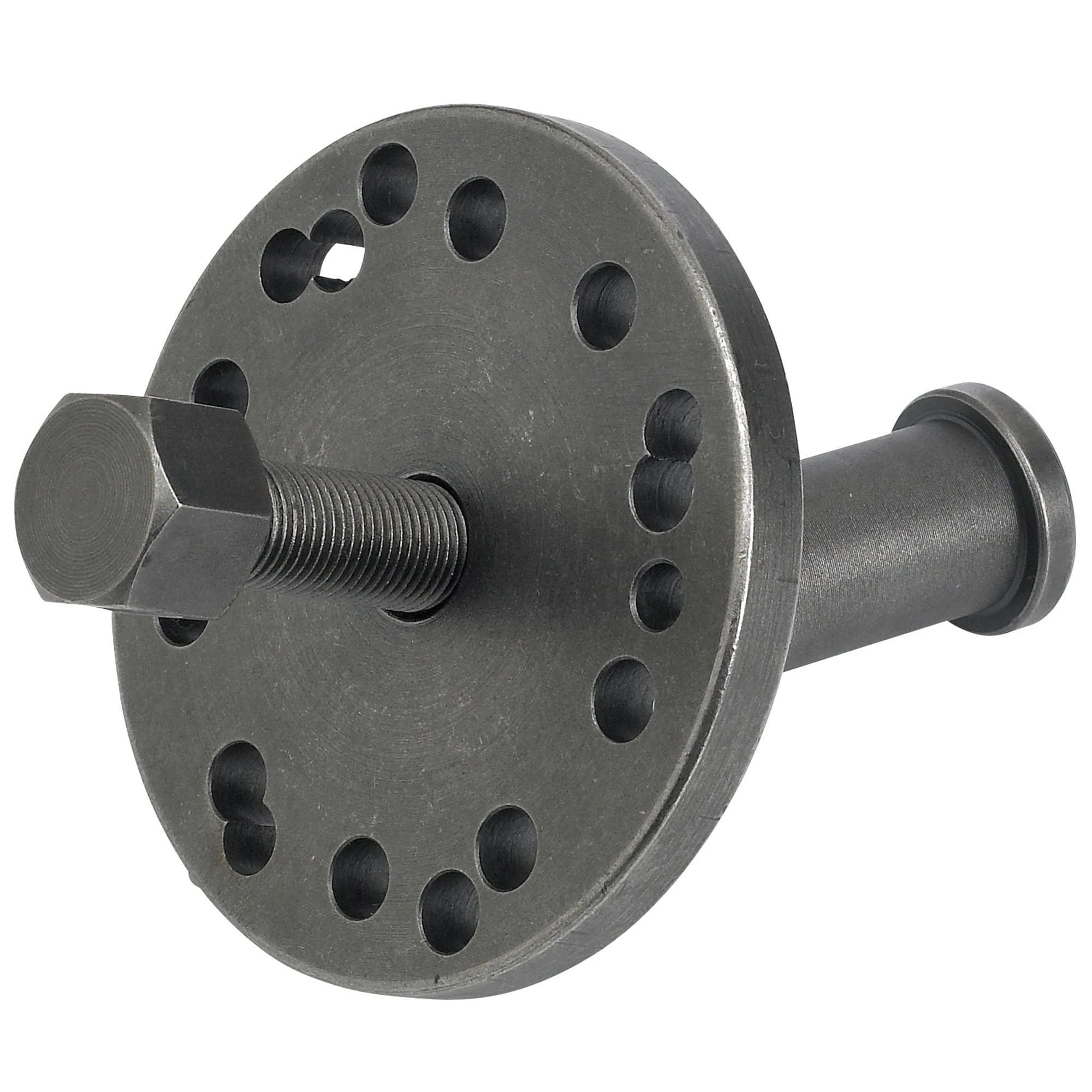 This 10-stud Clutch Hub Puller will allow you to remove 3, 5, and 10 finger clutch hubs on 1941 -1984 Big Twins without removing the transmission end cover, and 1971 – early 84 XL Sportster models. This puller allows you to remove the hub without removing the transmission end cover on big twin models. It can be used on late 1984 – 1990 models by enlarging a few of the holes.