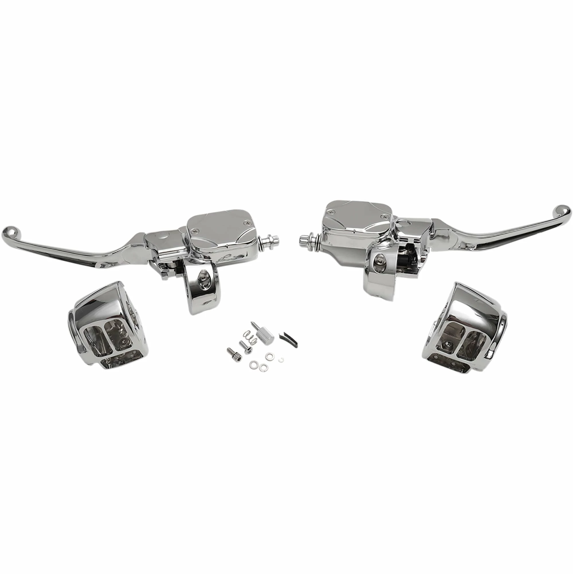 - Kits include master cylinder assembly, clutch lever assembly, die-cast switch housings with radiused edges and OEM-style clamps.
