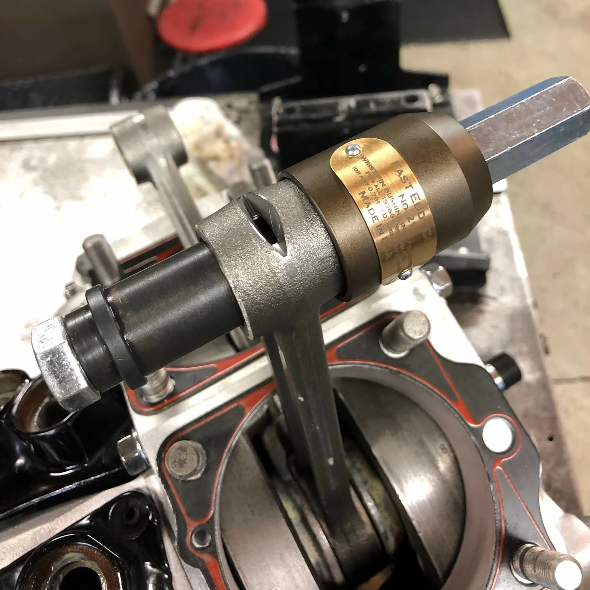 When doing a top end rebuild, it’s important to inspect the wrist pin bushings in the rods and replace them if they’re worn. This tool allows for quick and easy removal of old bushings and installation of new ones. Engineered to work, engineered to last. And as always, this tool is 100% American made. Fast Eddy Co. offers a lifetime warranty to original purchaser.