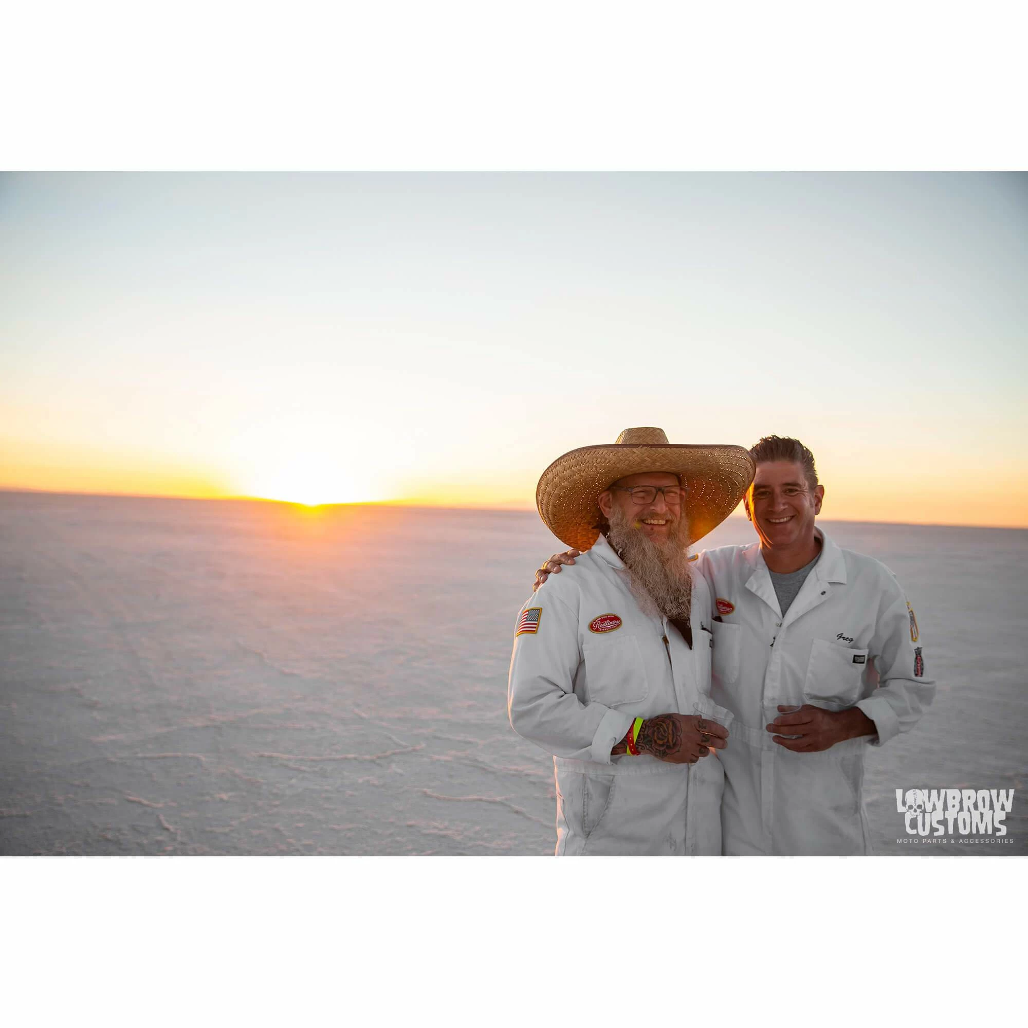 Show your support for Team Lowbrow and our efforts to break land speed records at the world famous Bonneville Salt Flats! We are headed out to Bonneville Speed Week in August to do what we do, which is try really hard to go as fast as possible on vintage motorcycles, break records, and have the best time we can. Hey, someone’s got to do it!