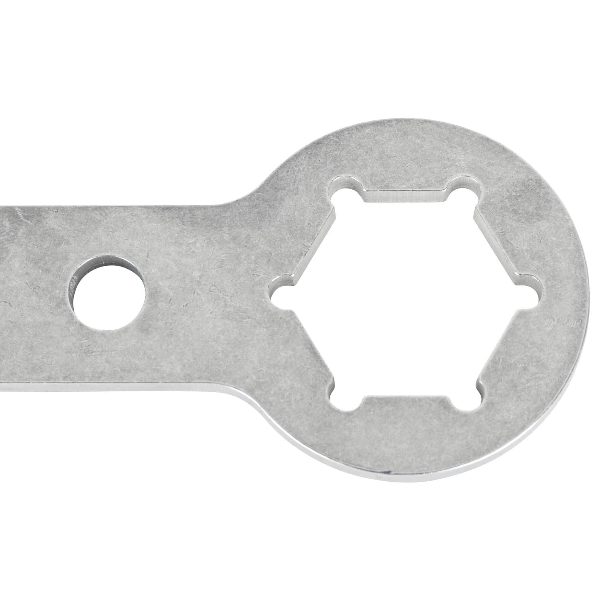 Once nice thing about Harley-Davidson motorcycles is that many parts have remain largely unchanged for decade after decade. The fork tube caps / nuts are one of these items, using a 1-3/8″ hex on Harley-Davidson Big Twins (FL, Dyna, Softail etc) as well as Sportsters 1987 & later.. Many people don’t have a large enough socket or the proper wrench to install or remove their fork tube caps, so we decided to make one out of heavy-duty stainless steel, in the USA, and sell it at an affordable price. Now there is no excuse for using channel locks on your beloved motorcycle!