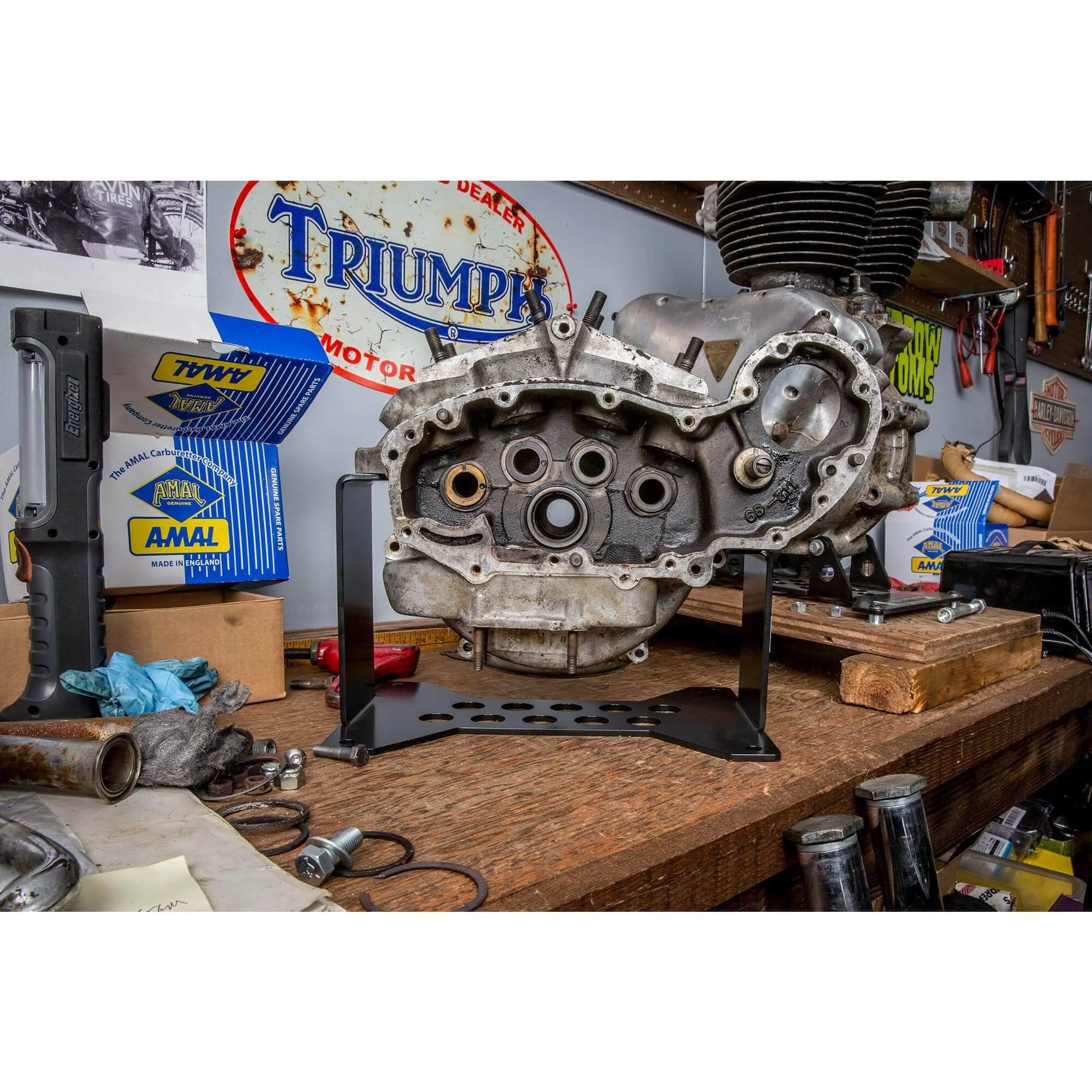 The heavy gauge steel construction and durable black powder coat make the Lowbrow Customs 45 Flathead Motor Engine Stand simple to use and stand up to years of use and abuse. This engine stand works with Harley-Davidson 45 cubic inch flathead motors from 1932 through 1973. Perfect for cradling your engine while you work on your chassis, or just as an excellent stand for displaying a spare engine. Made in Ohio, U.S.A.