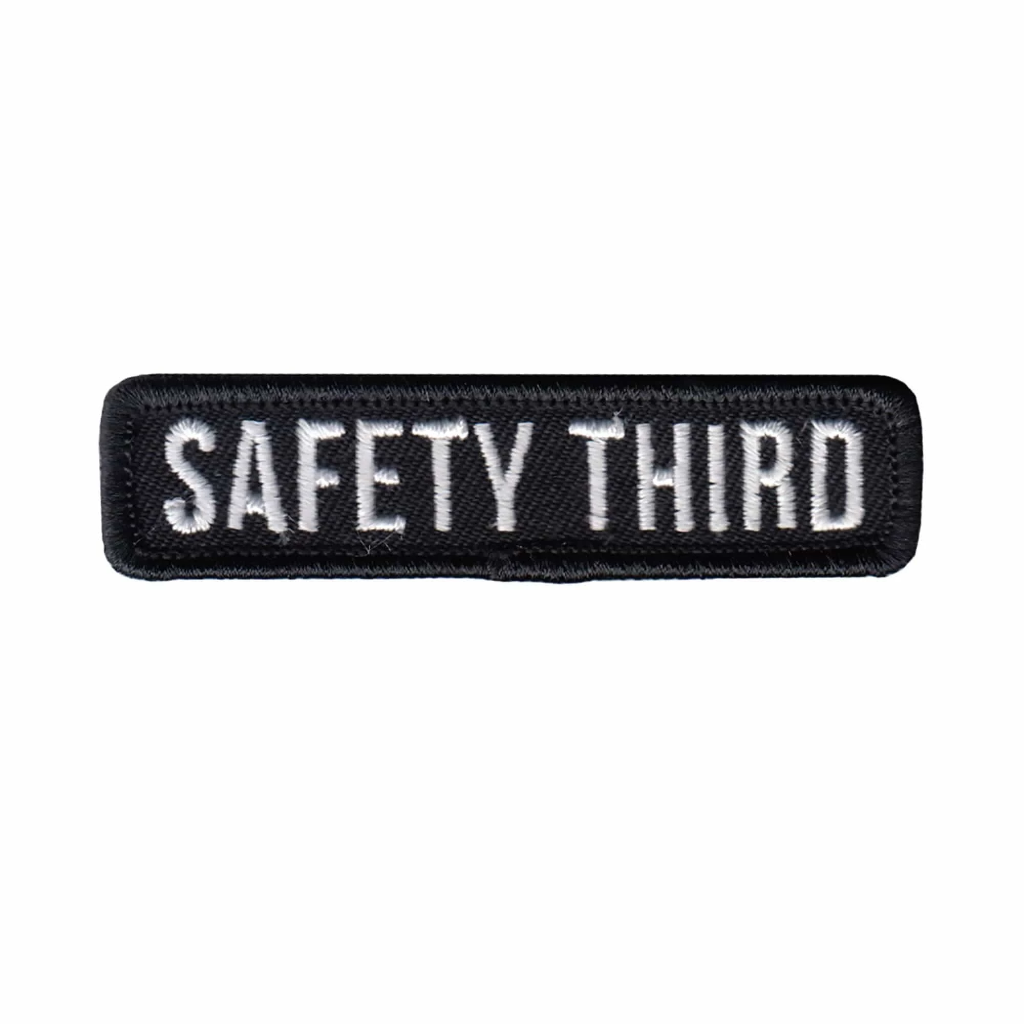 Safety Third. Why third? If you ride motorcycles, especially choppers, then you know the answer. This embroidered patch features a a heat seal backing. This patch is 3″ wide x 0.75″ high.