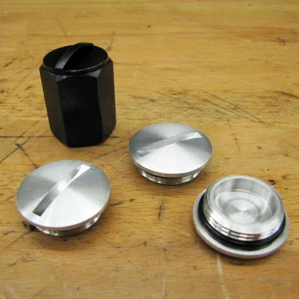 Lowbrow Customs Slotted Inspection Cap / Plug – Set Of 3 With Tool – Triumph / BSA