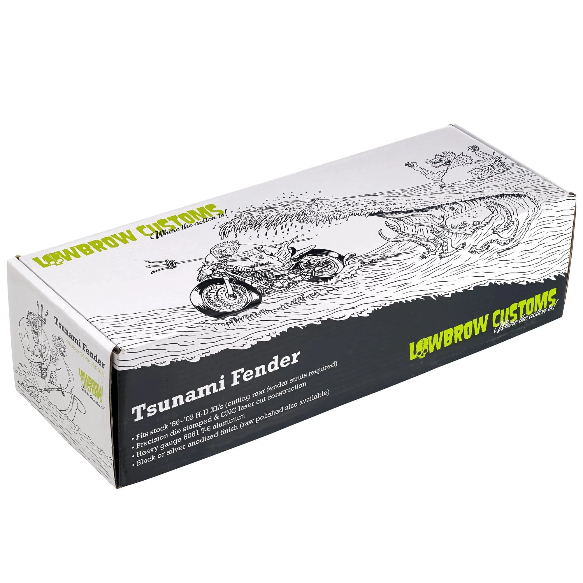 The Tsunami Fender from Lowbrow Customs bolts right in place of your stock rear fender (cutting rear fender struts required) on your 1994 – 2003 Harley-Davidson Sportster and instantly changes the look of your bike. The Lowbrow Customs Tsunami Fender for Harley is the go-to choice for tracker style bikes whether for the street or hooligan races on the dirt track. The heavy aluminum construction gives you many options between paint or polish your custom motorcycle fender, ready to rock right out of the box. See Additional Information below for fitment.