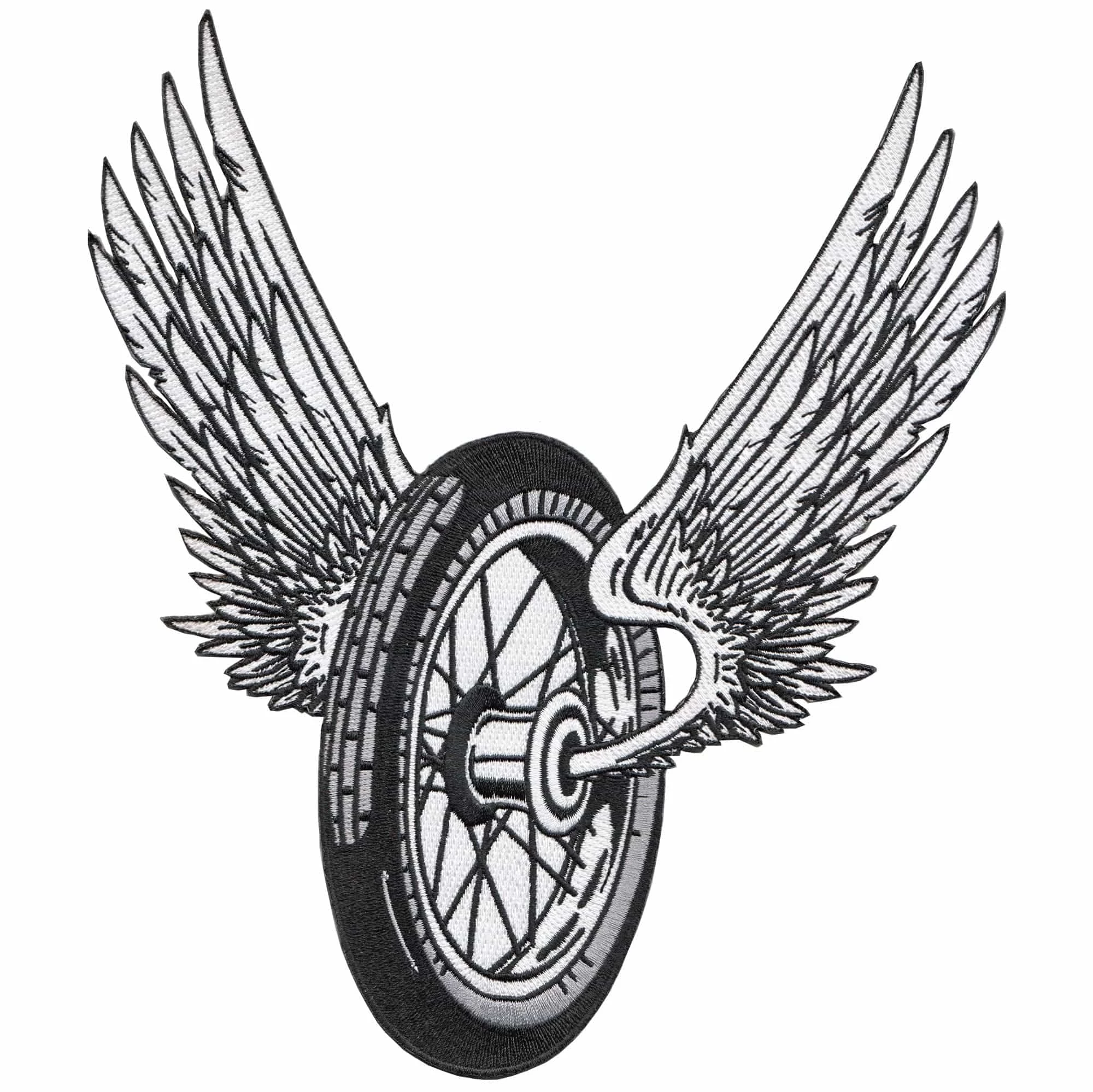 Lowbrow Customs Winged Motorcycle Wheel Patch – Large Back Patch