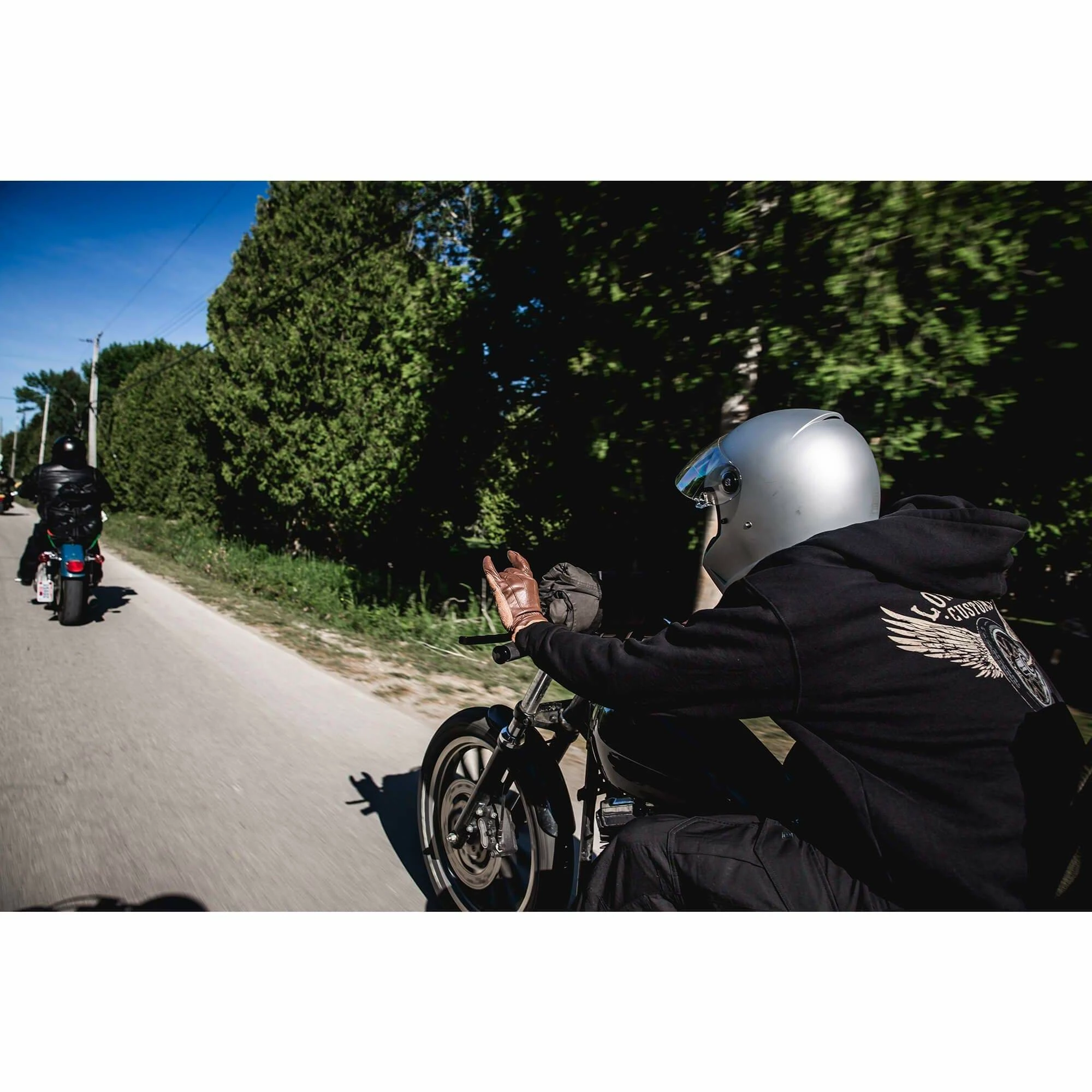 A classic, vintage style design, this winged motorcycle wheel design features a Lowbrow Customs logo left chest and the winged wheel design full back. These premium hooded sweatshirts feature a 10oz. 80% cotton/20% polyester exterior. The fit on these sweatshirts is great, with extra long cuffs, heavy gauge flat drawcord, and #5 YKK Nylon Kissing Zipper.