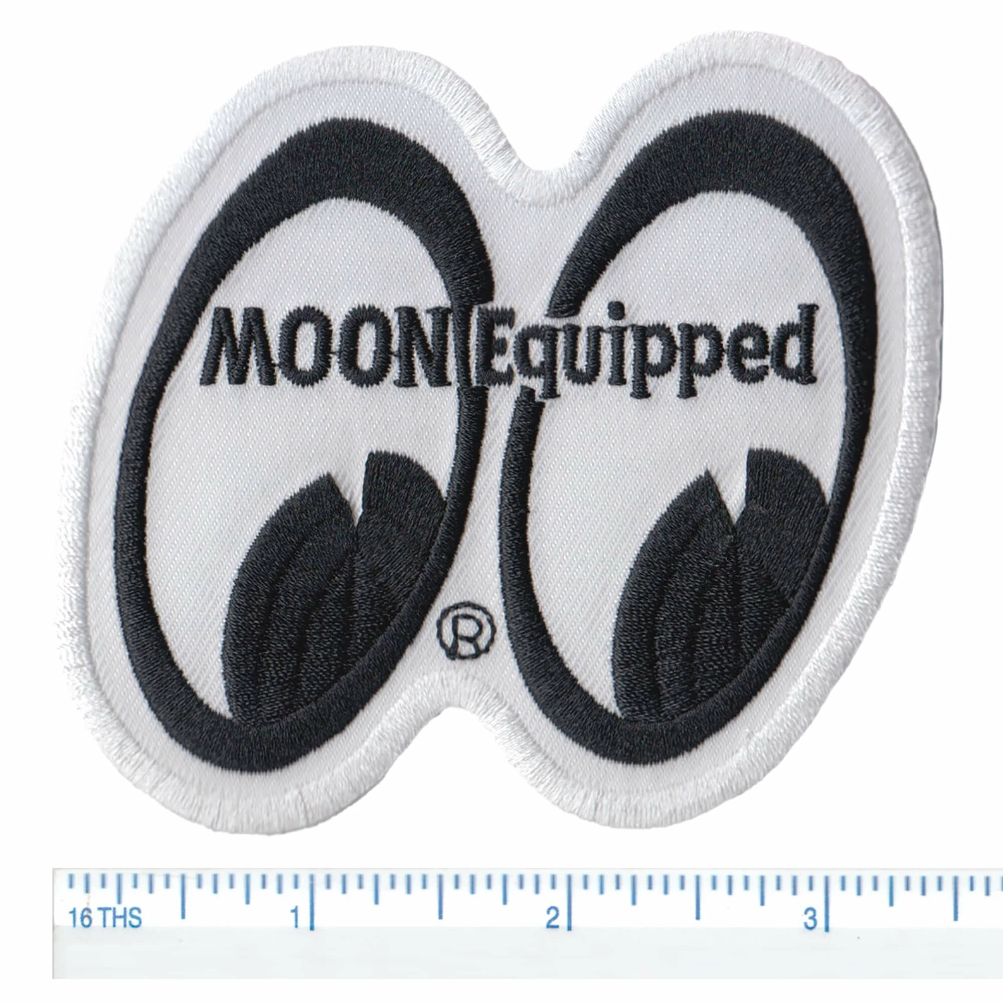 This Moon Equipped patch is custom cut and features the infamous Eyes and the text logo trademark “MOON Equipped” embroidered in black thread with a white border.