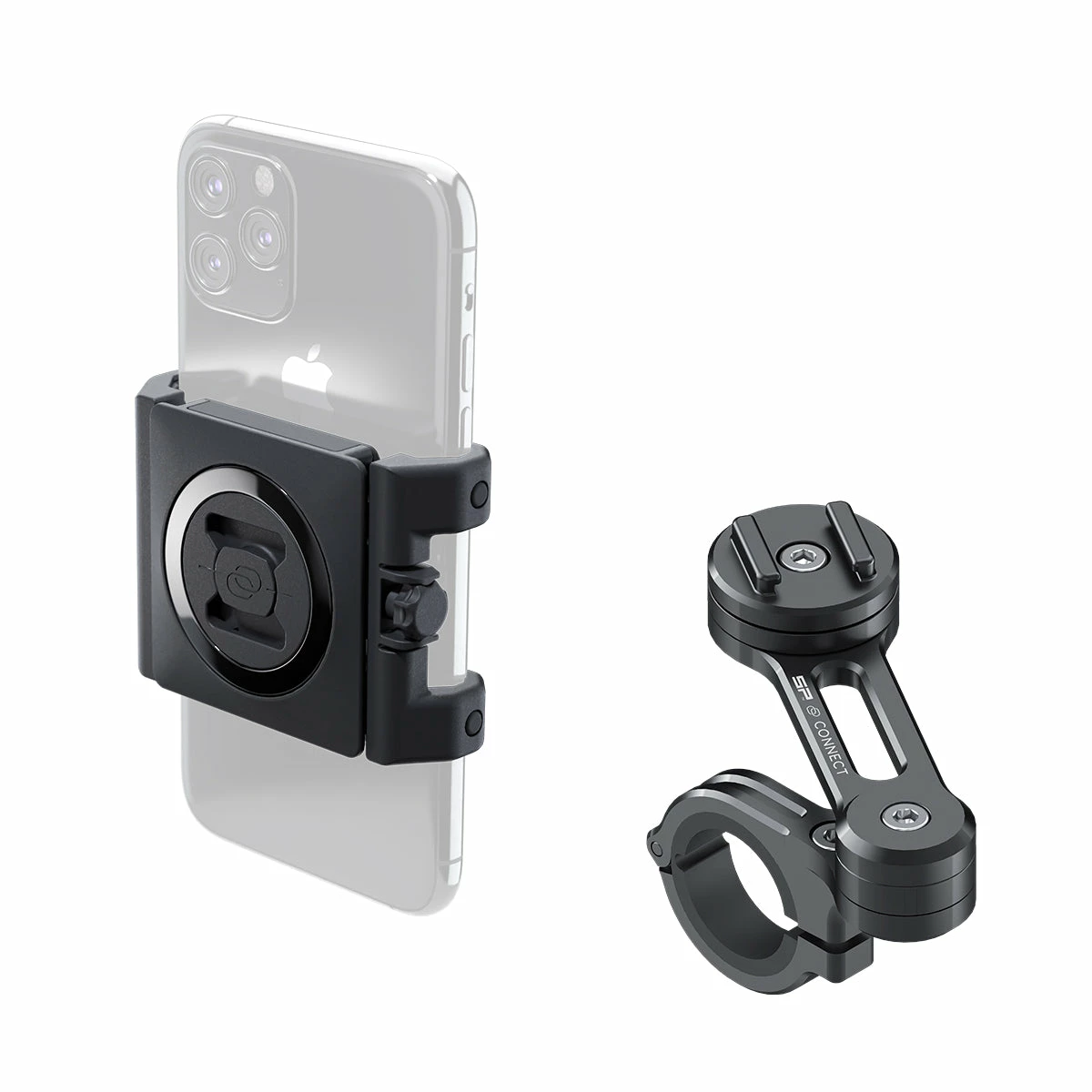 The SP Connect™ Universal Phone Clamp and Mount lets you mount your smartphone to your motorbike in seconds. Fasten the MOTO MOUNT PRO to the handlebars of your motorcycle and you are ready to mount the SP Connect™ Universal Phone Clamp by placing it on the mount and turning it 90° clockwise.